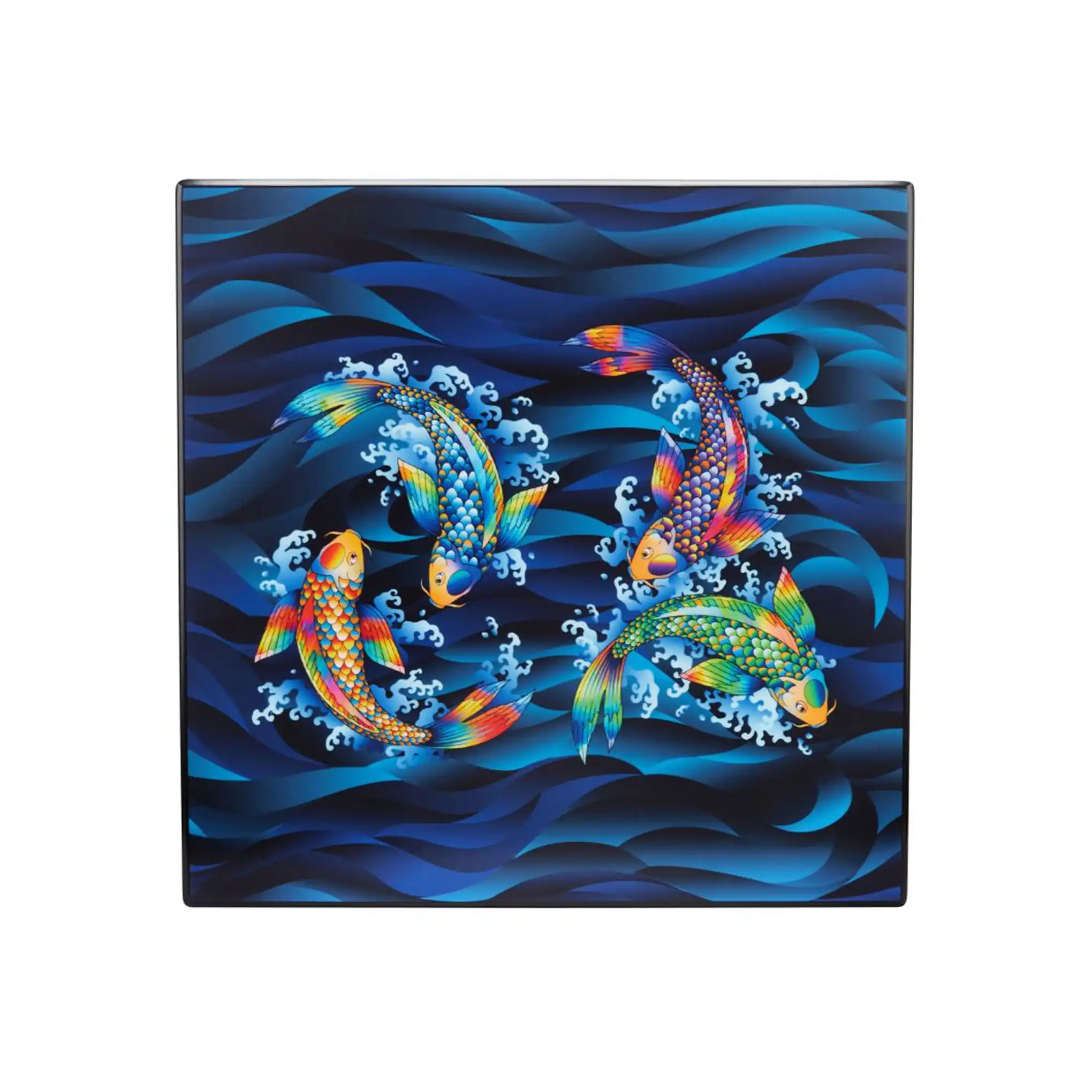 קופסת היומידור מעוצבת בצורת קובייה ומעוטרת במוטיב של דגי קוי, עם גימור סאטן עדין וצירים מוזהבים המעניקים לה נופך יוקרתי ומאוזן. מידות: 243 × 243 × 193 מ״מ חומרים: עץ ארז משקל: 3,700 גרם