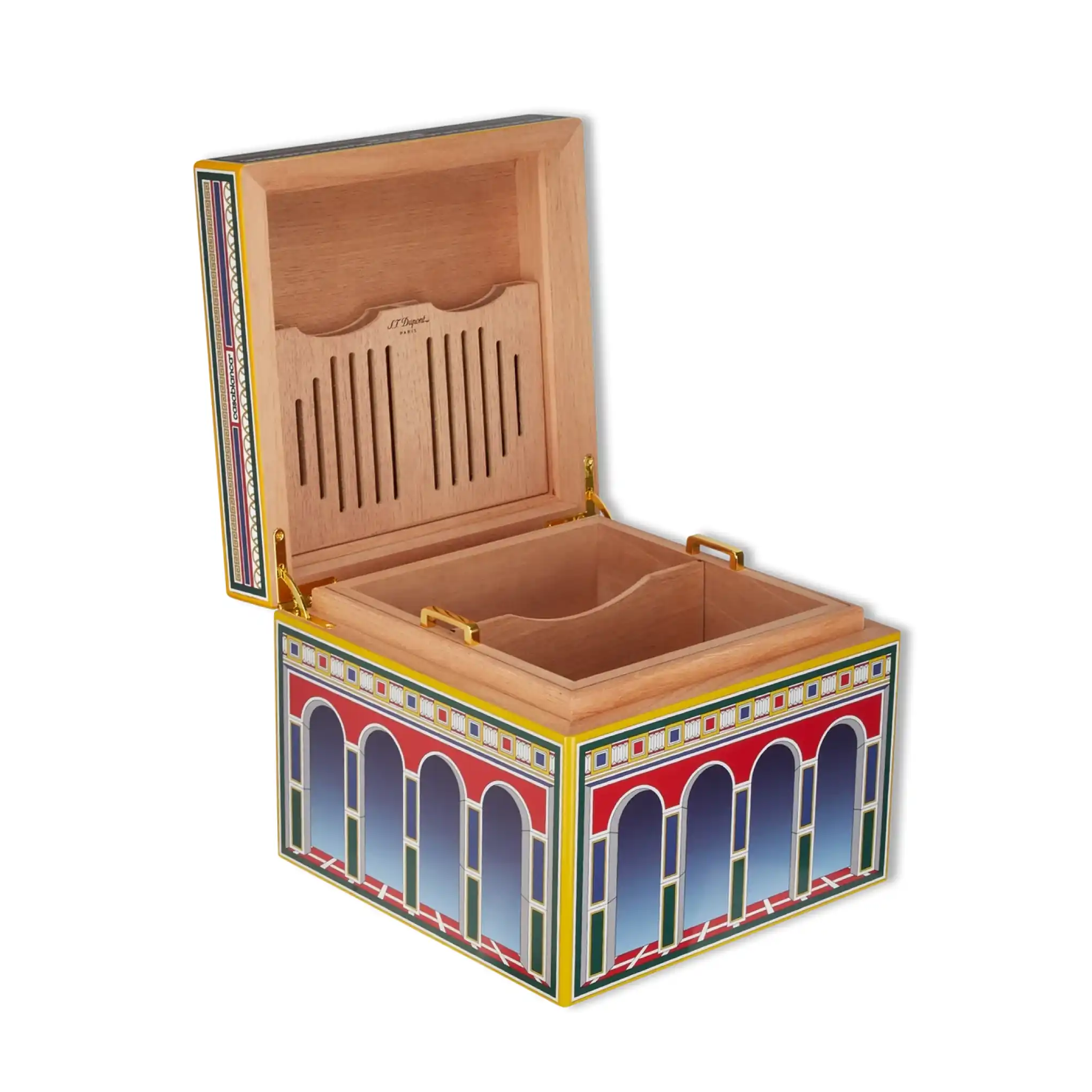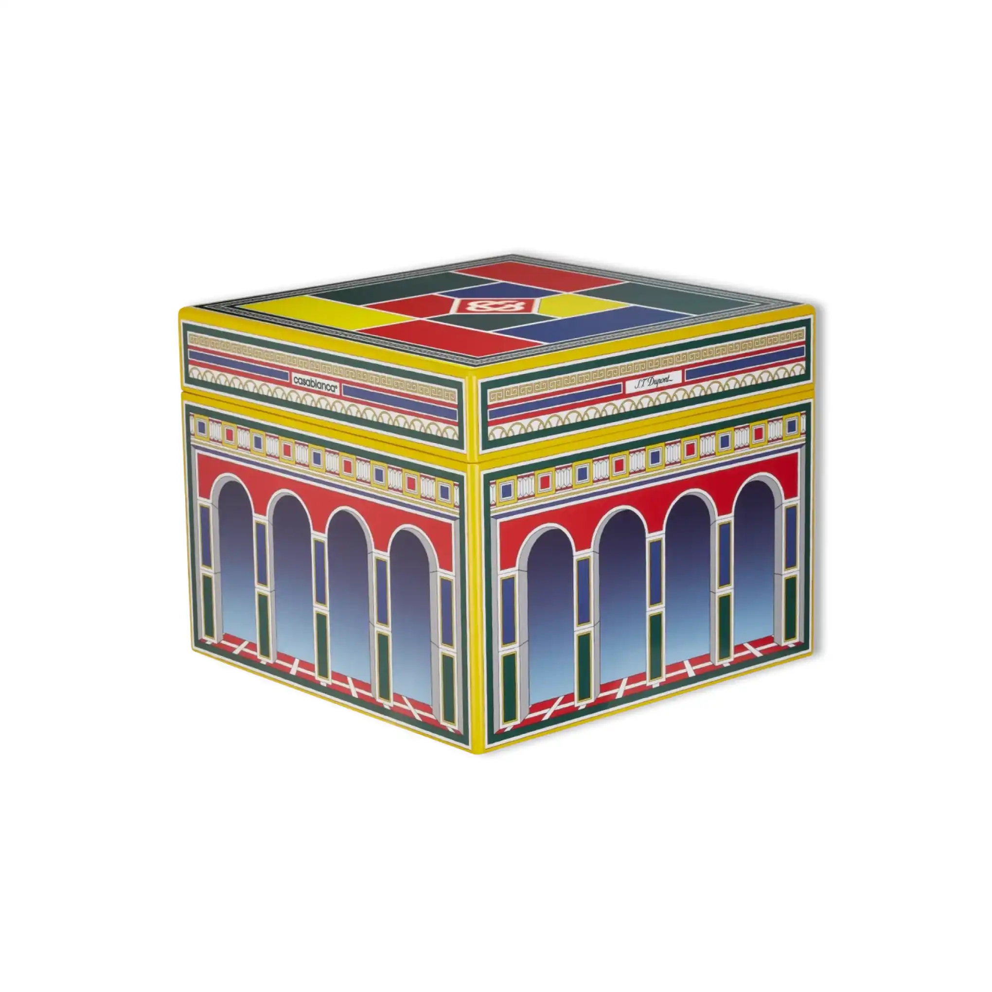 היומידור S.T. Dupont Tennis Cube, פרי שיתוף פעולה אמנותי בין דופון לבית האופנה Casablanca, משלב עיצוב עכשווי עם השראה יוונית קלאסית. הקופסה עשויה עץ ומעוטרת בלוחות לכה צבעוניים המזכירים את קווי מגרש הטניס, לצד דוגמאות גלים וסלסולים בהשראת אדריכלות יוון העתיקה. החלק הפנימי מחולק לתאים מעץ איכותי, והחיבורים מצופים זהב. במרכז הקובייה מתנוסס לוגו היהלום של קזבלנקה, ועל מכסה העץ מוטבע שם המותג Dupont משני צדדים. תוצאה ססגונית ואלגנטית המשלבת מסורת צורפות עם עיצוב מודרני ואנרגיה ספורטיבית.
